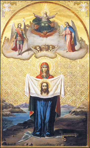 Свети убрус Сина Свога као светлосни омофор невидљиво простиреш над нашом земљом. Владичице, безмесечну ноћ одгонећи зрацима препорођена засијајући, да би радосно неућутно клицали: