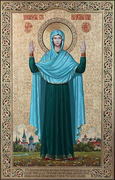Цео свет чује и зна да Пресвета Богородица у срцима Руса (Срба) разгорева храброст и снагу за подвиге и заштиту отаџбине нападнуте од туђинаца, и да пружа и Своју благодатну помоћ шаље целој руској (србској) војсци. Исповедајући веру у чудесну заштиту Небесне Царице у време ратне најезде на нашу земљу, овако кличемо Благодатној: