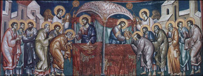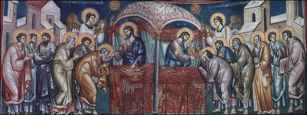 Од вечере уставши, како казује апостол Јован, и убрусом се опасавши, ученицима Својим ноге си умио, тиме нас научивши да трпези Твојој Божанској не приступамо неомивени сузама покајања за грехе наше. Свестан свенеопходности тајанственог омивења оваквог, као и оскудности суза помраченога срца мога, са Петром апостолом Ти вапијем: